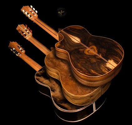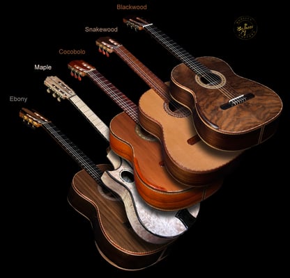 Die Gitarren können mit den edelsten Klang-Hölzern, die es auf der Welt gibt, mit allen Einzelheiten in einem Preiskalkulator zusammengestellt werden. Es sind Classic, Flamenco und Western Modelle zu haben. 6 bis 10 Saiten Gitarren.